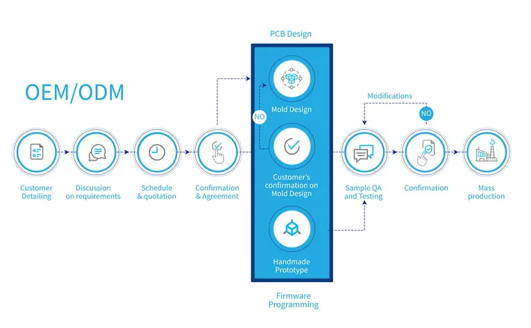 Mustech has its own strong Research and Development ability. We warmly welcome customers to cooperate with us to develop new products. Customers need only give us an idea, then we will do the rest including cosmetic, structure, electronics circuit design etc. We will present you working sample based on mock up before going to making mold. With the working sample, you can get market feedback by demonstrating it to your end users. If the sample gets good feeback, we will then further to mold and mass production.