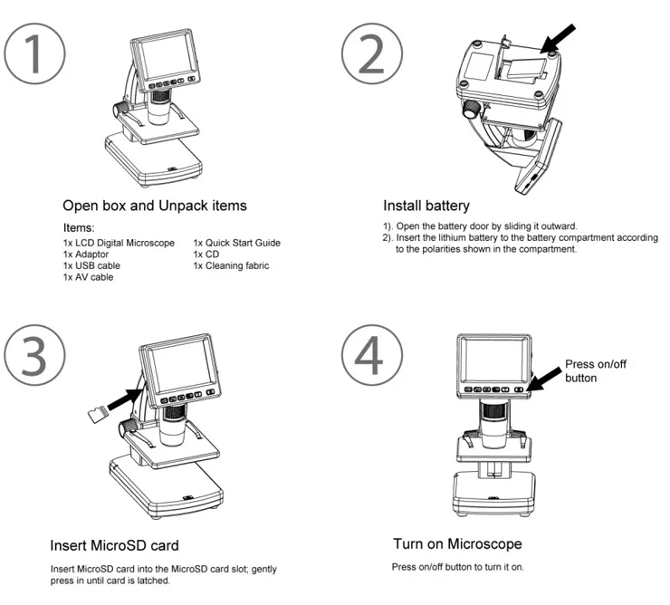 The 3.5-inch Standalone LCD Digital Microscope is a fantastic microscope that provides a good way for you to share high definition microscopic observation with others. The 3.5" quality LCD panel brings vivid crystal image.