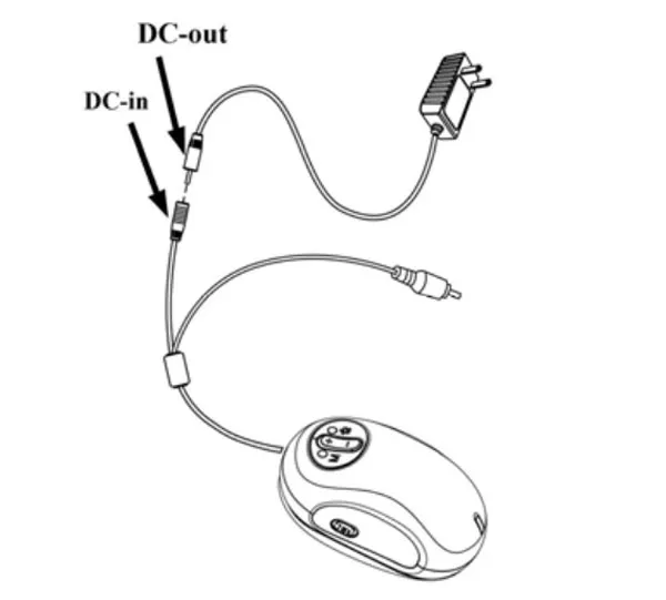 1.Insert the small end of the power adaptor into the black end of the Y-shaped power/video cable from Reading Aid.